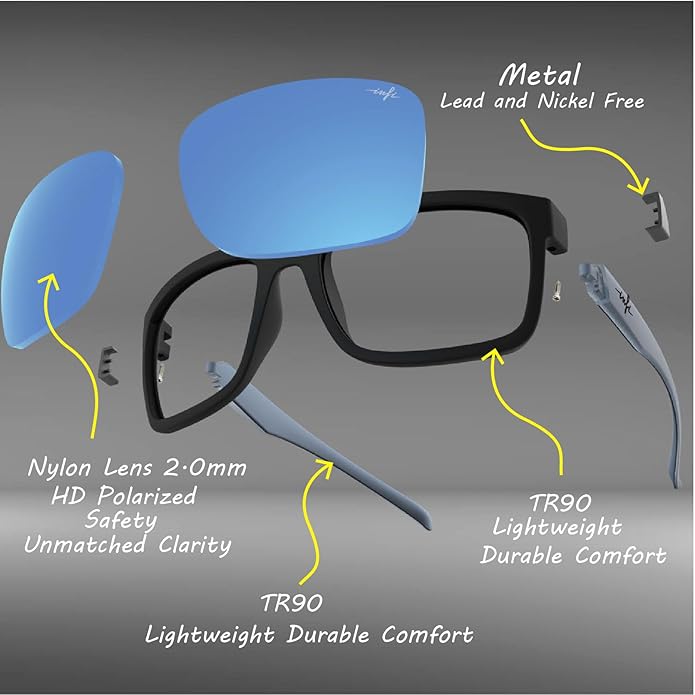 - Gloss Black frame and Blue Mirror lens with Fishoholic Logo on both sides