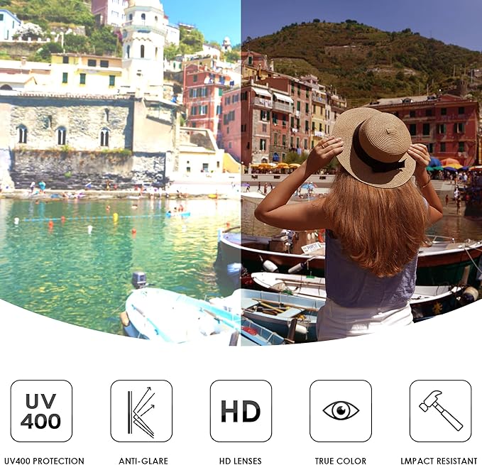 - 100% UV protection lens, help restore true colour, protect your eyes from long-term damage by blocking harmful UVA and UVB rays.