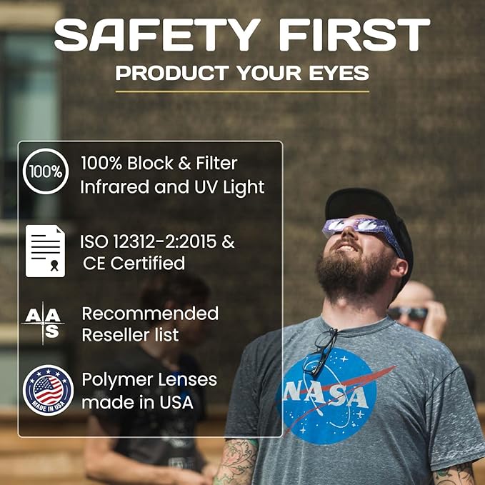 - SAFETY VIEWING FIRST: Tesyker Solar eclipse glasses are ISO certified and can filter harmful ultraviolet rays, infrared rays, and strong visible light. This makes them the safest and most effective way to view a solar eclipse.