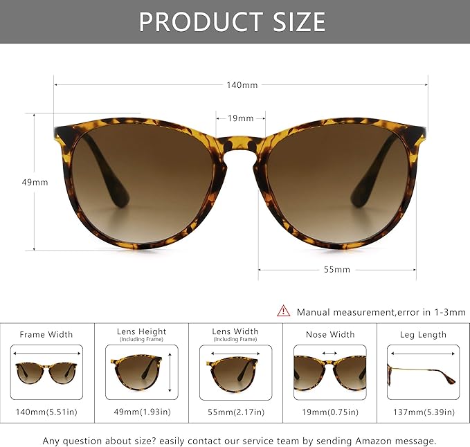 • Packed with Care Sized to Fit: Exquisite package includes cloth, pouch, mini screwdriver and box; frame width 140mm, lens height 50mm, designed to fit most faces