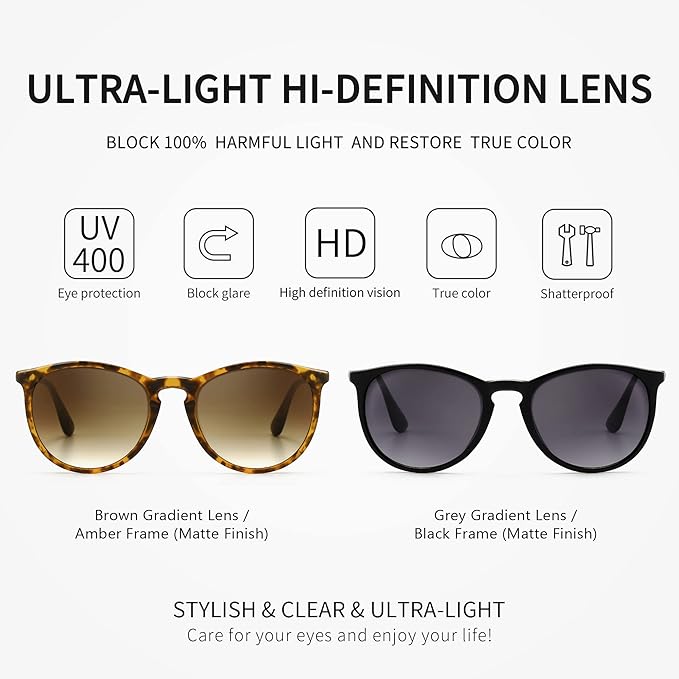 • Lightweight All-Day Comfort: Trendy sunglasses featuring ultra-light frame with keyhole nose bridge, ensure no slipping, no pinching, just pure comfort from morning to night